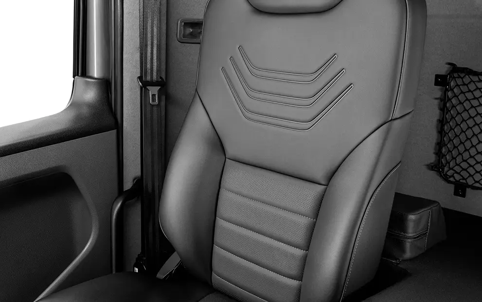 Eixo rígido motrix, molas pneumáticas com 4 bolsões de ar com amortecedores hidráulicos de dupla ação e barra estabilizadora