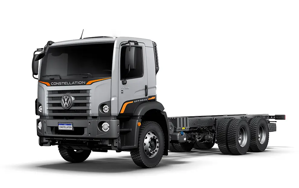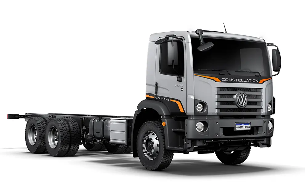 O Constellation 27.260 6x4 para operações fora de estrada e construção civil, traz a consagrada robustez necessária à estas aplicações com o exclusivo pacote Off-Road e opção do pacote Constructor! Traz vantagens sob medida para a aplicação: para-choque curto metálico e banco do motorista com cinto integrado.