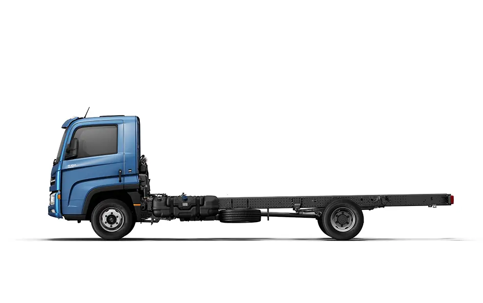 Chassi modular com longarinas simples, com drop e de perfil "U" constante na plataforma de carga