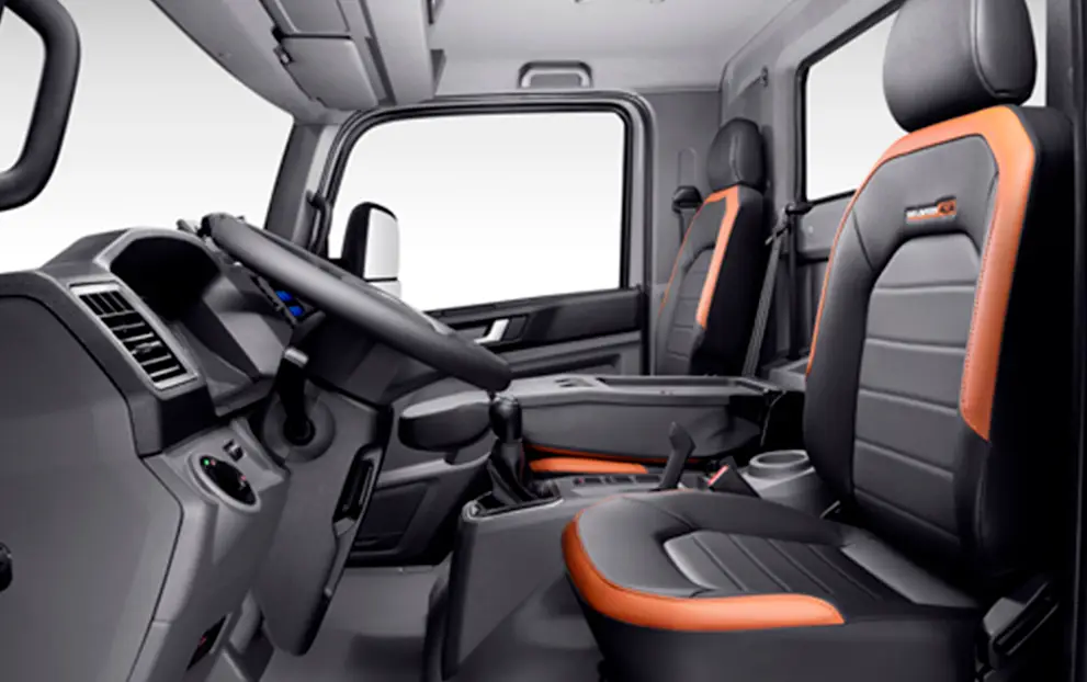 O motor de 180 cv e 600 Nm com faixa plana, proporciona alta performance e baixo consumo de combustível. Atende a legislação PROCONVE P8 com sistema de emissões SCR. Possui transmissão manual de 6 velocidades e caixa de transferência, entregando muito mais Robustez!