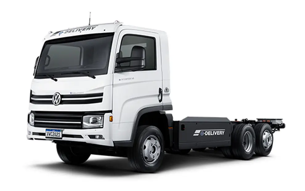 O modelo VW e-Delivery 14 6x2 com suspensão pneumática e 14,5 toneladas de PBT possui configuração adequada para aplicações urbanas e atende à legislação de restrição de circulação, VUC. Ágil, eficiente e sustentável, o novo VW e-Delivery é surpreendente. 100% conectado com a plataforma RIO. Sustentabilidade com tecnologia sob medida para o seu negócio. Esse é o VW e-Delivery!