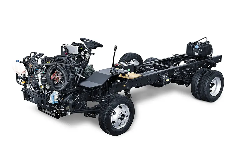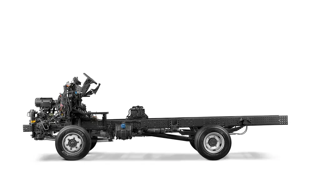 Chassi modular com longarinas simples, com drop e de perfil "U" constante na plataforma de carga