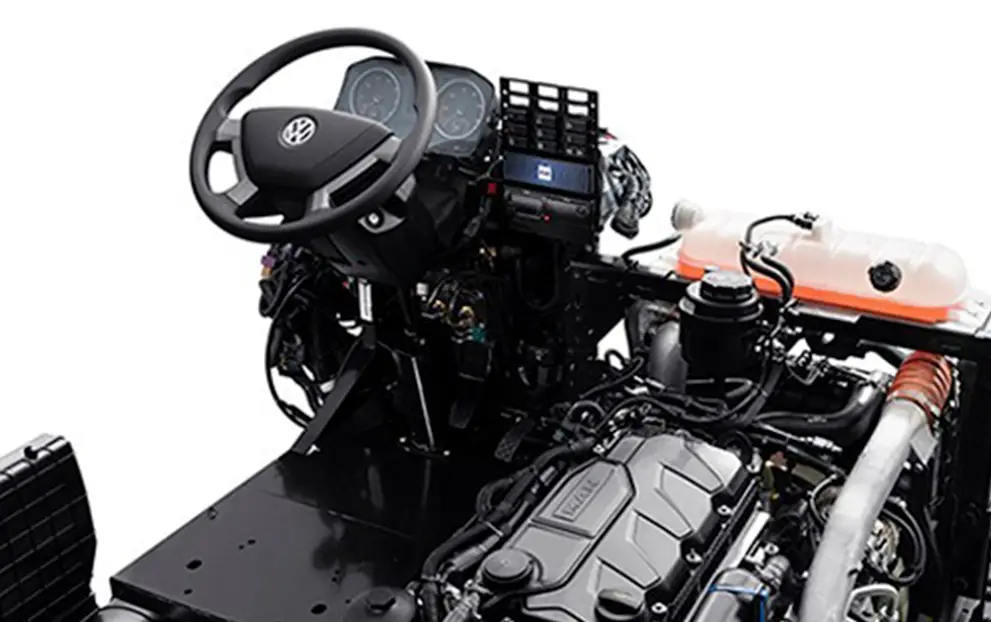 O novo VolksBus 15.210 traz novo painel de instrumentos analógico com display central de 3,5” com mais de 70 funções, que possibilita personalizar e deixar com os indicadores de sua preferência! O novo volante multifuncional garante acesso a tudo, inclusive ao rádio com bluetooth e permite atender as ligações sem tirar as mãos do volante! Mais tecnologia e inovação! Tudo interativo e conectado!"
